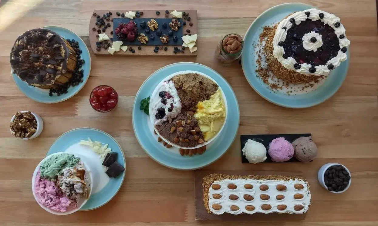 Crema Americana, Frutilla a la Crema y Chocolate con Almendras.
