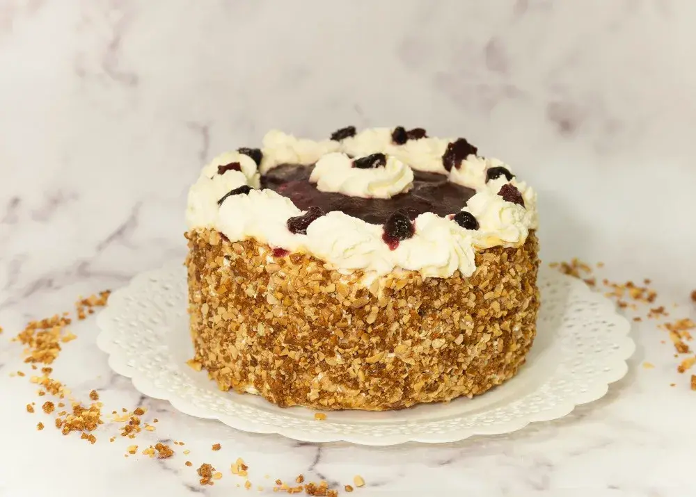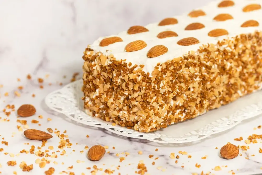 CREMA RUSA Base de vainilla, saborizada con pasta de nuez y sembrada con nueces crocantes.